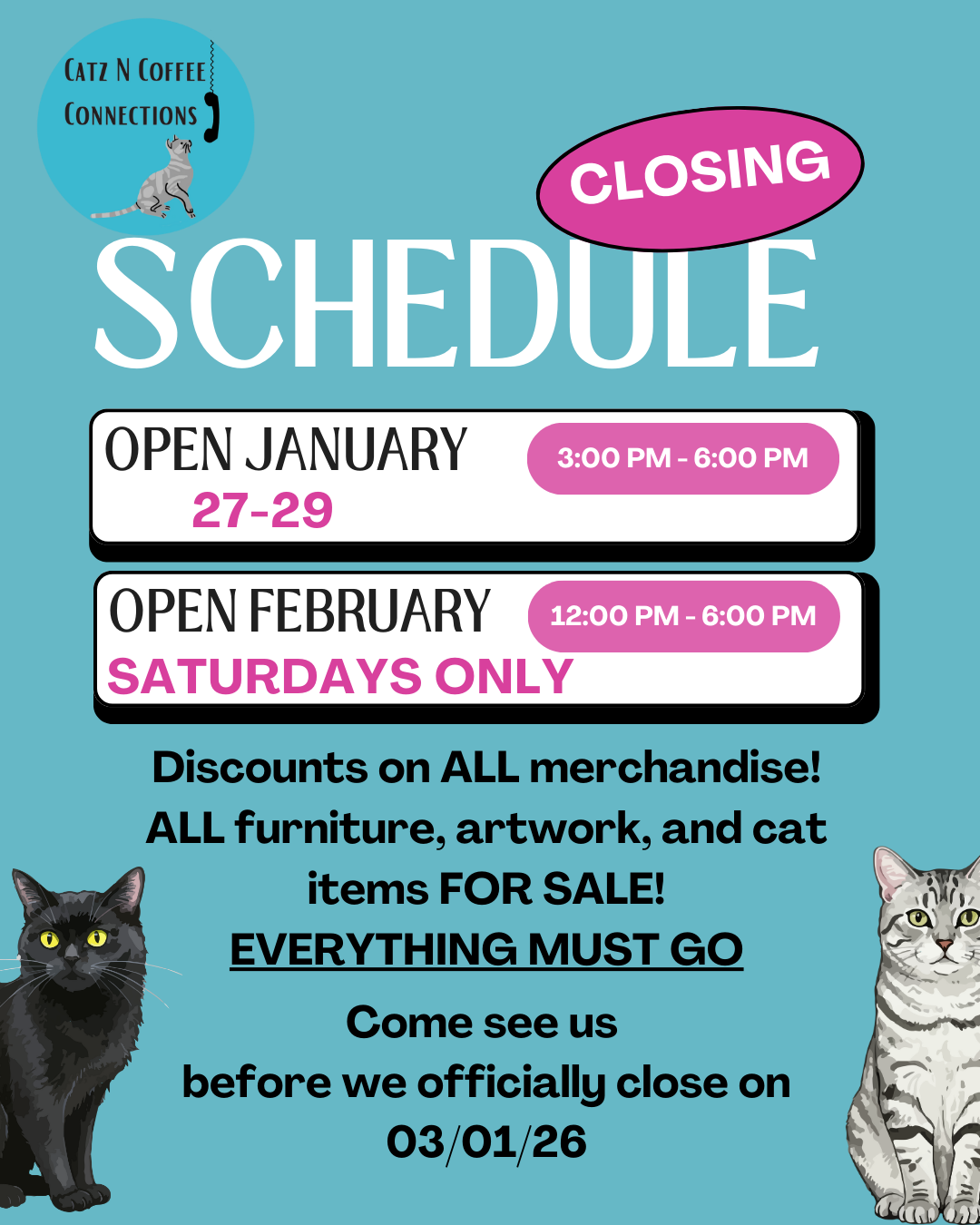 THE CAT CAFE WILL BE CLOSING AS OF 03/01/26